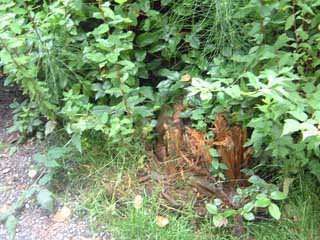 we did get to see some chipmunks though and they are really fast! here is one escaping into the bushes. see that bit to the left of the tree stump where the brown is a different colour. well that's a chipmunk. really.