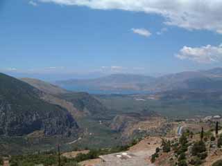 this is the view from our cheap hotel room in delphi! not bad huh? this is the gulf of corinth and delphi is half way up mount parnassosand. we didn't even book ahead! this room makes up for the terrible small rooms we get later on in our holiday. i also have a hi res version but it will take a bit to download.
