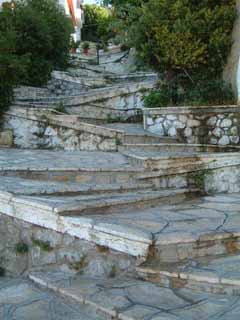 since delphi is on the side of a mountain the side streets are very steep. most of them have these weird slanty steps where you have to weave from side to side.