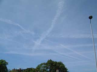 2. well, not really clouds in the usual sense... the amount of air traffic above london means that on a clearish day the sky is partially covered by trails from aircraft passing over.